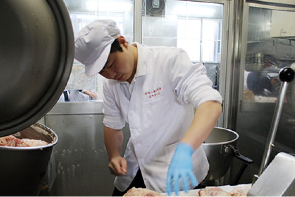 丸一ファームから出荷された豚は山中湖村の本社工場に運ばれ、スピーディーに加工されます。